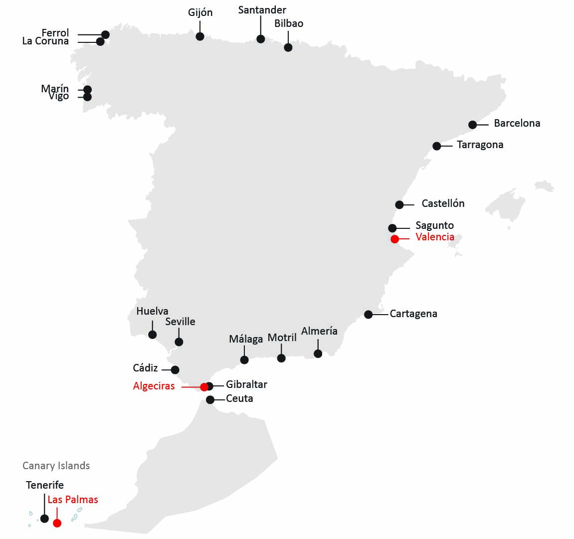 As your full-service shipchandler in Spain, we offer flexible warehousing solutions and cost-effective transport from major European hubs such as Hamburg, Rotterdam and Malaga.