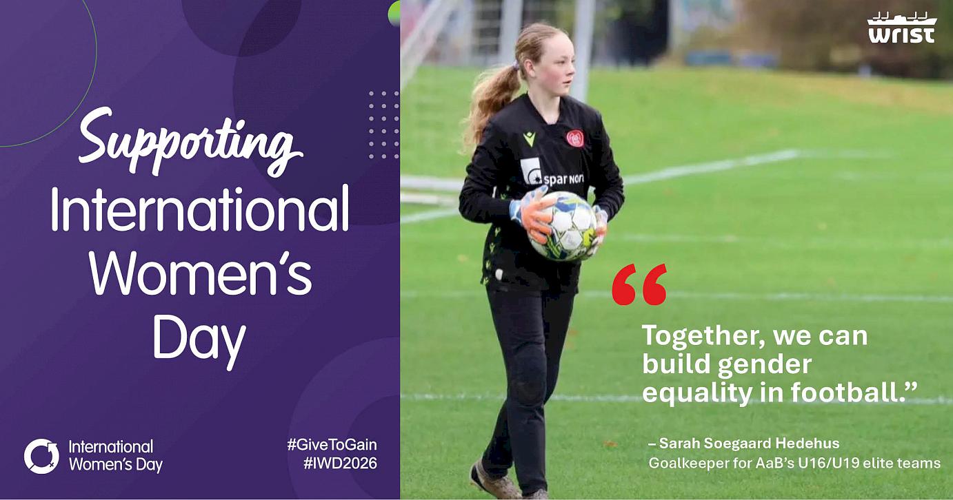 Imagine a football world where gender equality is the norm – free of bias, stereotypes and discrimination. A world that is diverse and inclusive. This International Women’s Day, Wrist is proud to support Sarah Soegaard Hedehus, a talented young goalkeeper from Noerresundby, who plays for AaB U16/U19. Sarah dreams of becoming a professional football player and represents a new generation of girls who are not only chasing their ambitions on the pitch, but also standing up for equal opportunities in elite sport.