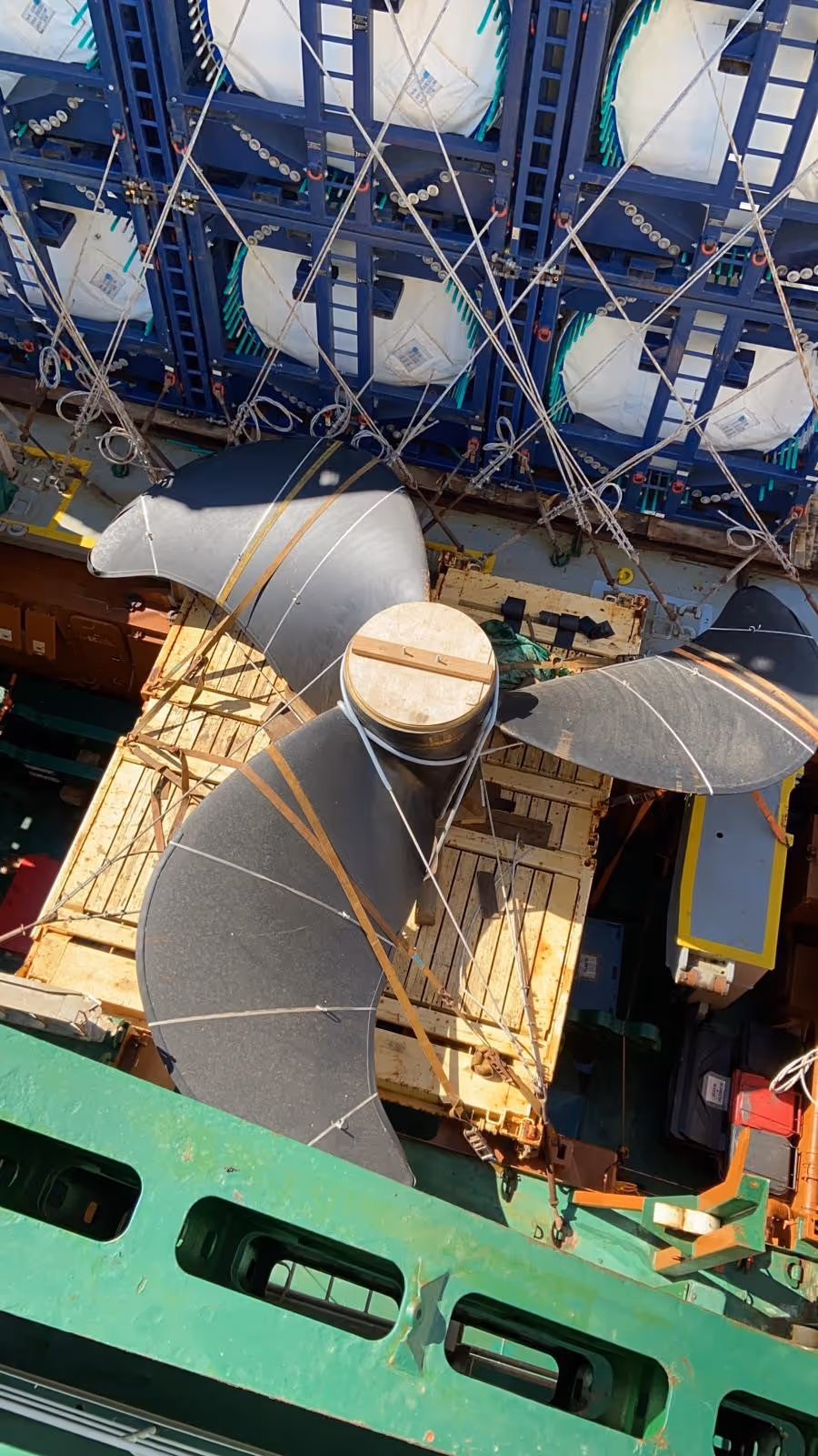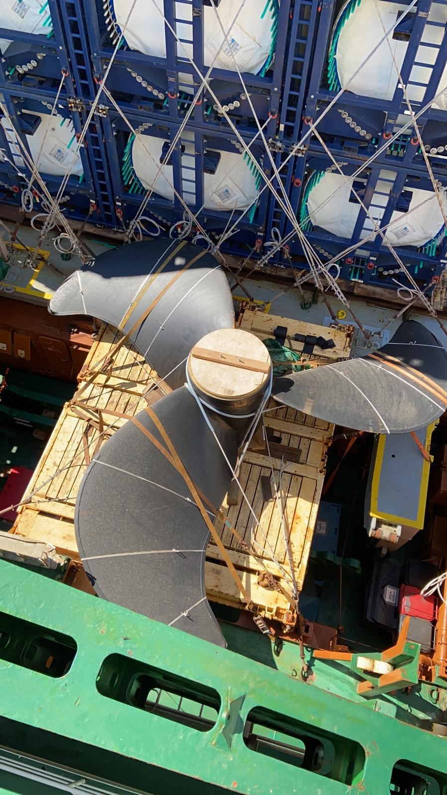 Together with our agent DSV, we managed to create the necessary space on-board the vessel for the propeller. See stowage plan here. The propeller was successfully loaded and shipped on June 11, sailing towards Ferrol, Spain.